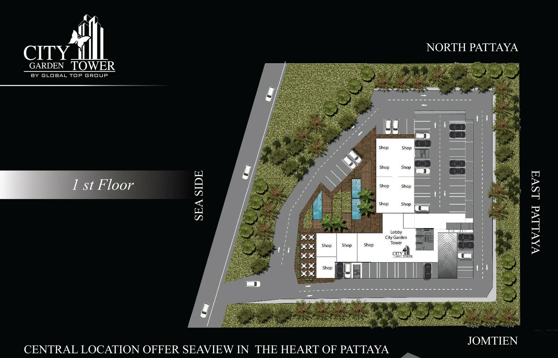 Pattaya City Garden Tower passar både den som söker ett bekvämt semesterboende mitt i hjärtat av Pattaya och den som vill investera i en lägenhet i ett av Thailands mest eftertraktade område. Det centrala läget gör det enkelt att promenera till shopping, nöjesliv och till värdsberömda Pattaya Beach som ger magisk möjlighet till bad, vattensport och avkoppling vid havet. Pattaya är levande storstad med nöjesliv året runt, med ett stort utbud av internationella restauranger, beachklubbar, barer, nattklubbar, shopping gallerier, levande musik, vattenparker och golfbanor. Således allt finns här.
