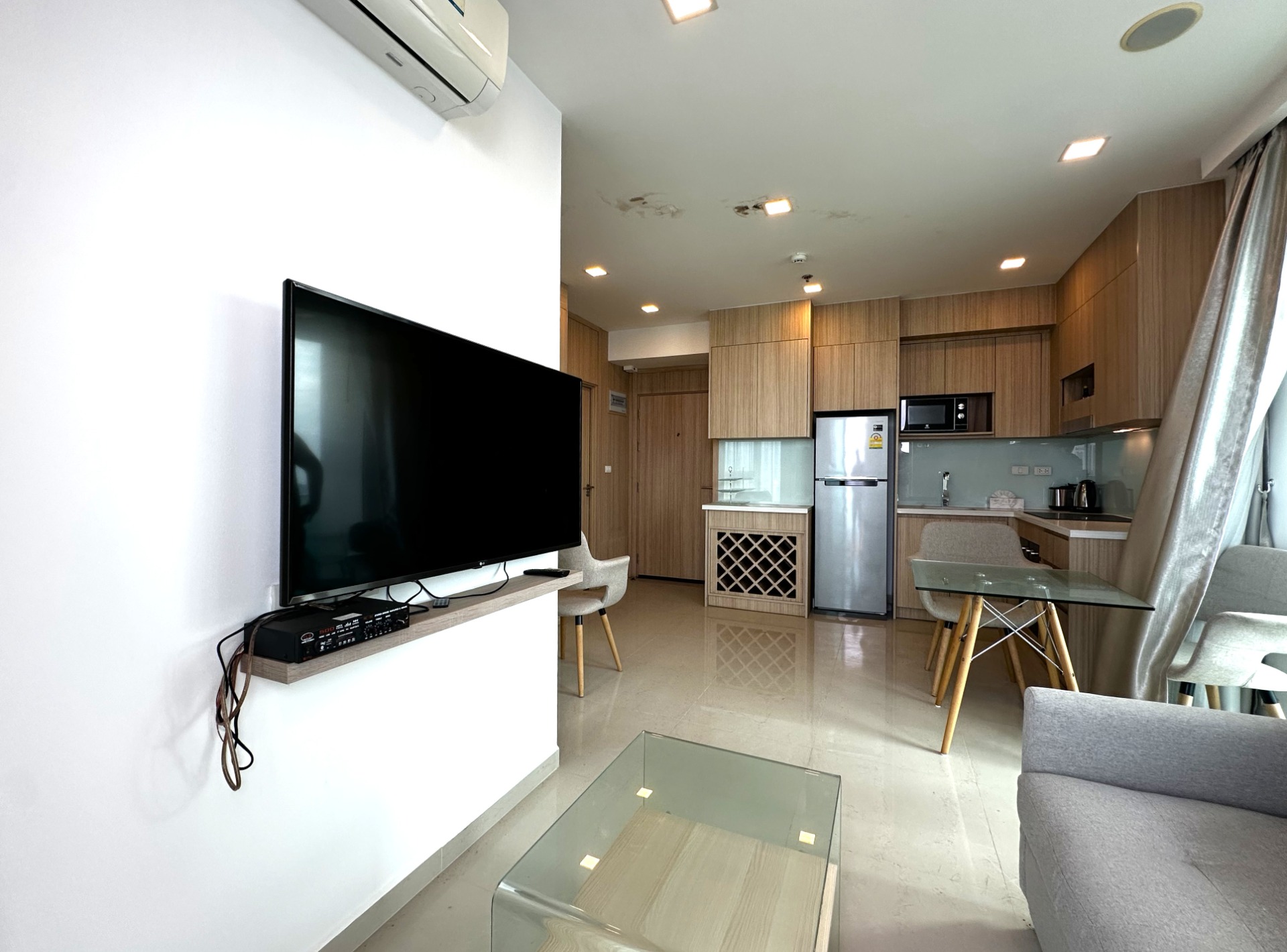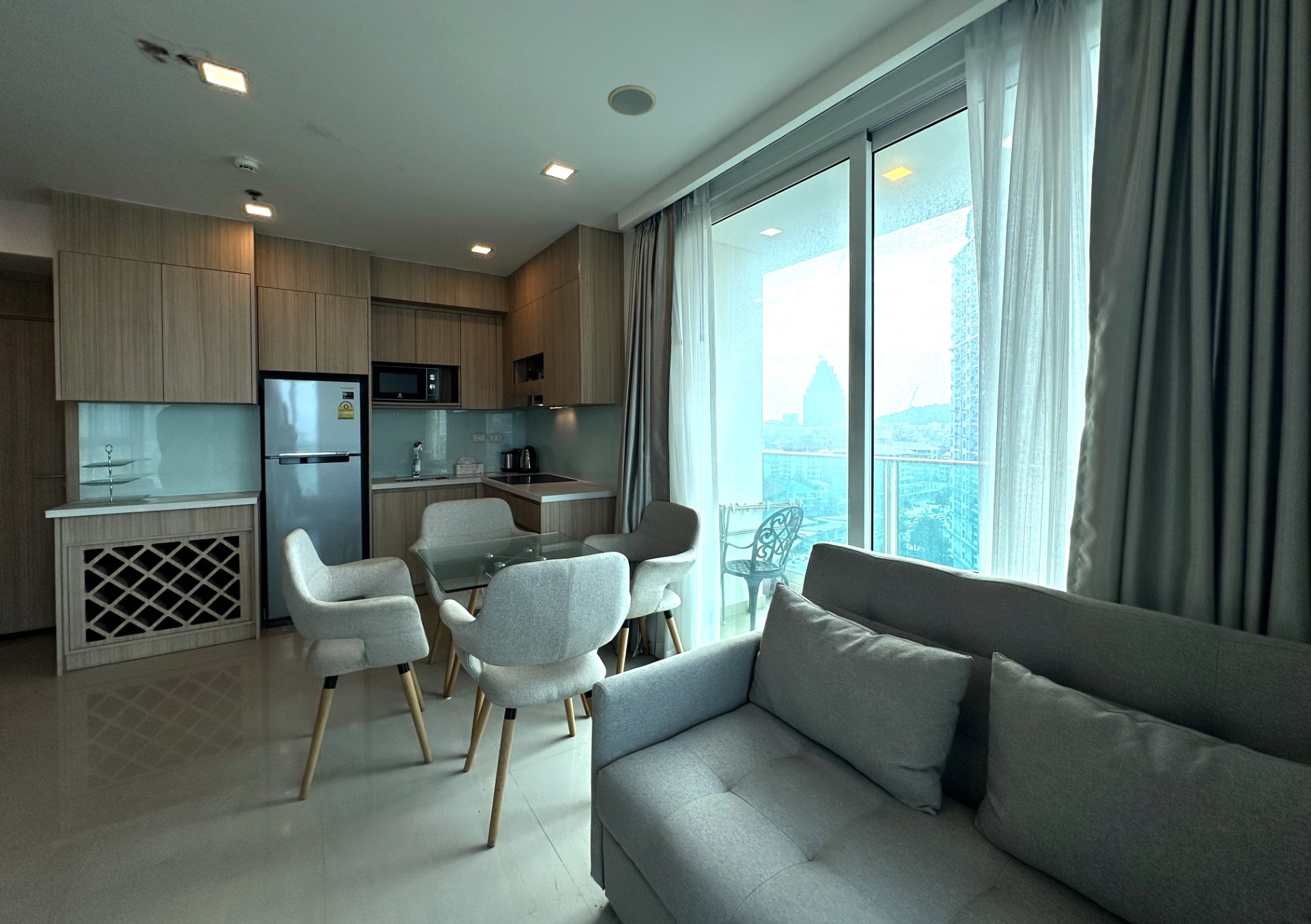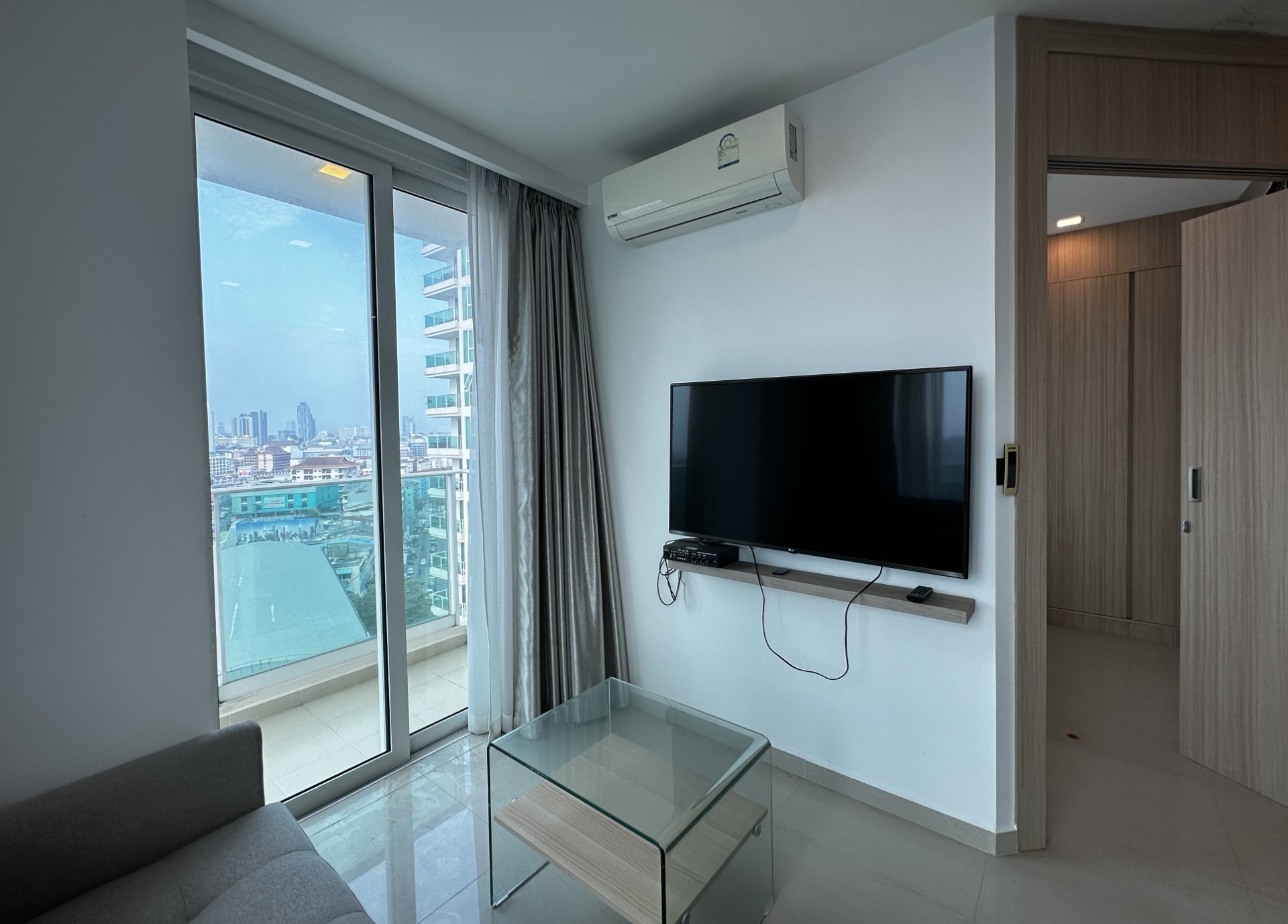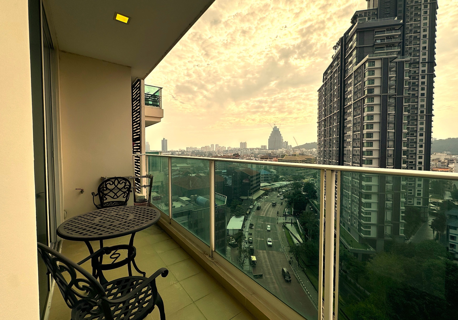 Lägenheterna i City Garden Tower finns i olika storlekar och planlösningar, från kompakta studiolägenheter till större enheter med ett eller flera sovrum. De flesta enheter har balkong och många erbjuder utsikt över stad, hav eller poolområde. Denna möblerade condo är på 42 kvm och har vardagsrum och kök i öppen planlösning, sovrum, badrum med wc samt en vidsträckt balkong med utsikt över staden och havet.
