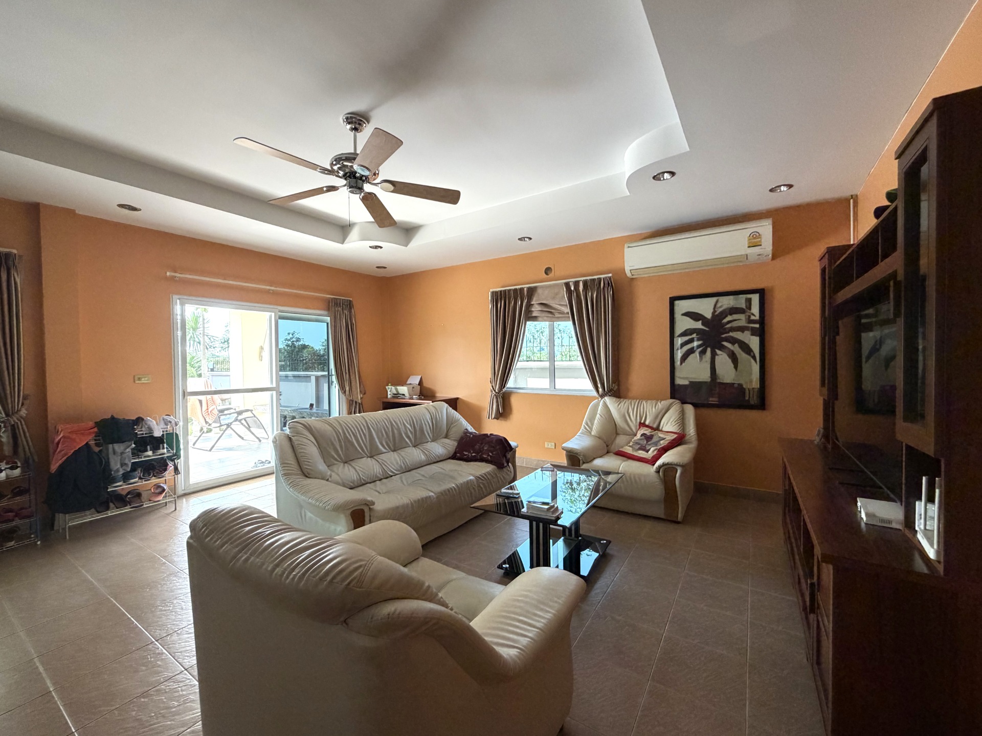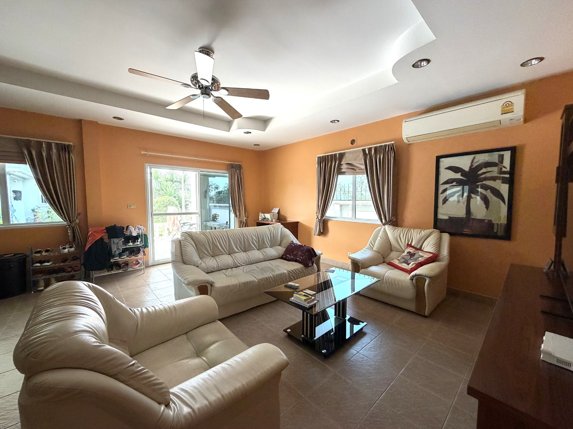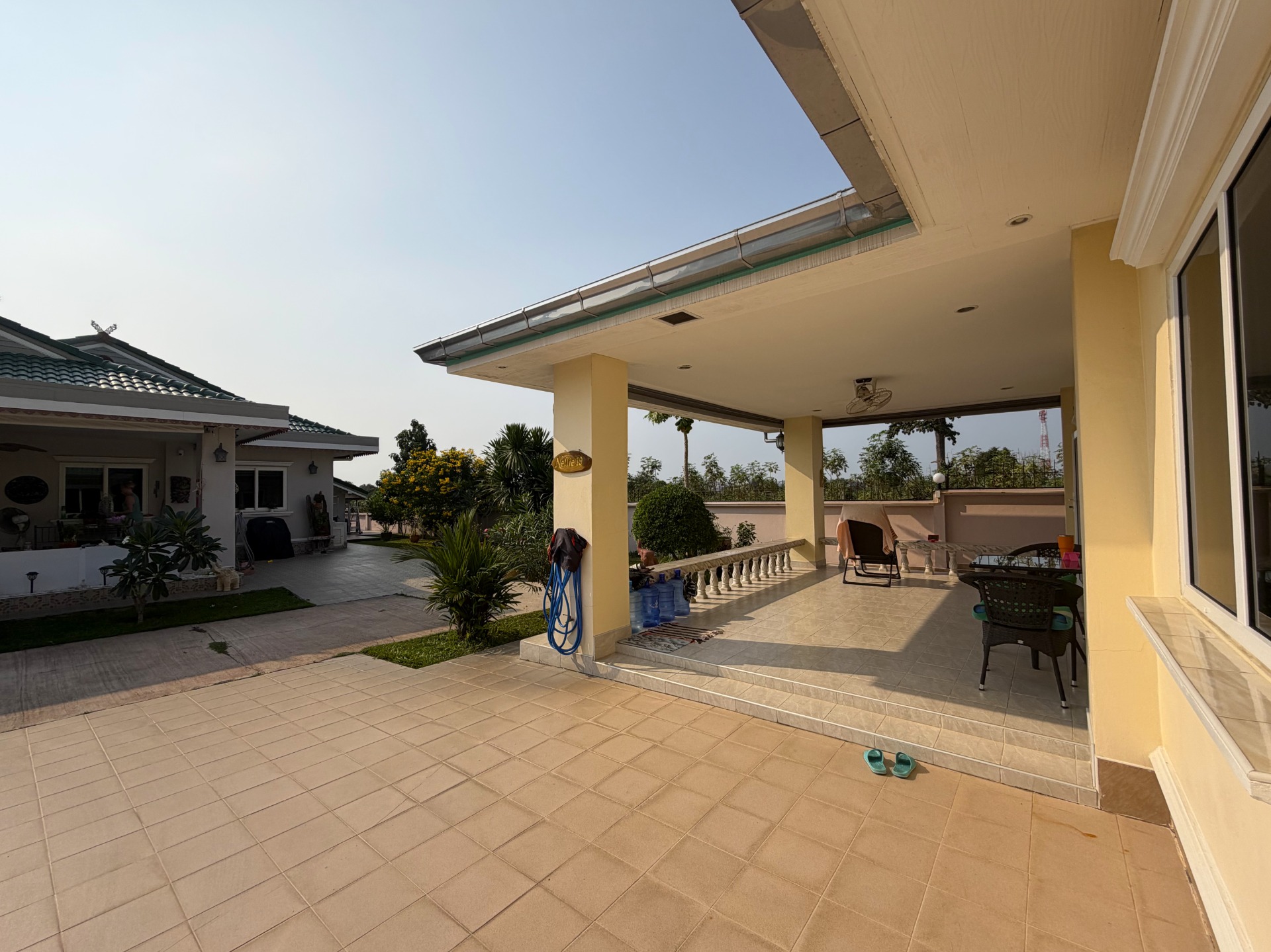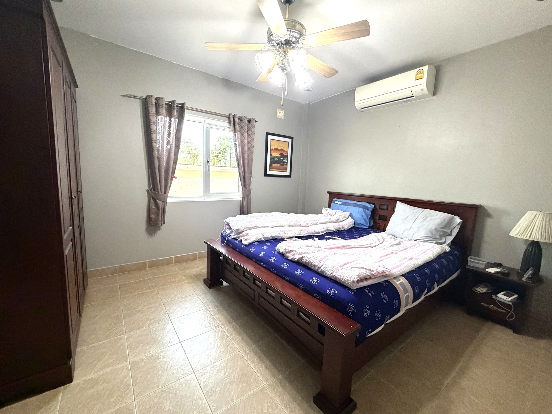 Välkommen till Sabai Village och till denna lyxiga hörn bungalow med carport, förråd och stor terrass under tak. Bungalowen har en stor hörntomt med buskar, träd och blommor och ligger inte långt ifrån områdets stora pool. På uppfarten vid huset har man även sin egna parkeringsplats under den tillbyggda carporten. På gatan några få meter bort finns både flera thai restauranger, shopping butiker, motorcykel verkstad och 7-Eleven. Här är det lugnt och tyst på grund av områdets höga mur som sträcker sig runt hela området. Luftigt vardagsrum med kök i öppen planlösning med full maskinpark, två luftiga sovrum, samt ett helkaklat badrum med dusch, handfat och wc. Alla rummen är fullt möblerade med soffgrupp, köksmöbler, utemöbler, bestick och glas, takfläktar och AC etc etc. Området har en stor gemensam pool om 900 kvm med barnpool, bubbelpool samt dusch och wc. Hela området består av endast 37 bungalow och är öppet och luftigt utan mur runt husen med gröna gräsmattor, blommor, buskar, fruktträd och palmer. Här finns trädgårdsmästare, poolskötare, bevakning och underhålls-personal på heltidsanställning för att hålla området välskött. Sabai betyder "må bra" på thailändska vilket är ledstjärnan för hela området. Vid entrén står en vakt och bevakningen sker 24-timmar om dygnet. De flesta som bor här på området är Skandinaver.