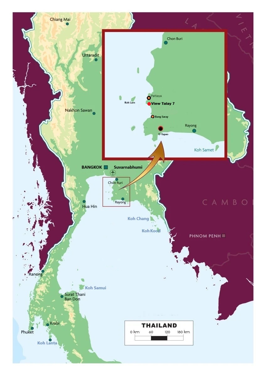 VIEW TALAY 7: är belägen i början av Jomtien Beach Road, med mycket bekväm tillgång till alla lokala bekvämligheter, dvs. strand, restauranger, butiker, barer, nöjesliv baht buss och mycket mer.